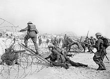 The 1/4th Battalion landed at Le Havre as part of the Jullundur Brigade of the 3rd (Lahore) Division in November 1914 for service on the Western Front.[23] The 1/5th Battalion landed at Suvla Bay as part of the 163rd (1/1st Norfolk and Suffolk) Brigade in the 54th (East Anglian) Division in August 1915; it was evacuated from Gallipoli in December 1915 and moved to Egypt and saw action again at First Battle of Gaza in March 1917.[23]