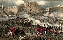 The regiment embarked for the West Indies in 1793[9] and took part in the capture of Martinique, Saint Lucia and Guadeloupe in 1794.[10] It returned to England in 1795[11] and then embarked for India in 1796 where it took part in operations against Tipu Sultan including the Siege of Seringapatam in April 1799 during the Fourth Anglo-Mysore War.[12] It also took part in the Invasion of Île Bonaparte in July 1810[13] and the Invasion of Isle de France in November 1810 during the Napoleonic Wars.[14]