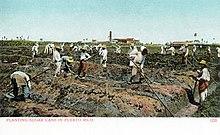 In the British Empire, slaves were liberated after 1833 and many would no longer work on sugarcane plantations when they had a choice. British owners of sugarcane plantations therefore needed new workers, and they found cheap labour in China and India.[24][25] The people were subject to indenture, a long-established form of contract which bound them to forced labour for a fixed term; apart from the fixed term of servitude, this resembled slavery.[26] The first ships carrying indentured labourers from India left in 1836.[27] The migrations to serve sugarcane plantations led to a significant number of ethnic Indians, southeast Asians and Chinese settling in various parts of the world.[28] In some islands and countries, the South Asian migrants now constitute between 10 and 50% of the population. Sugarcane plantations and Asian ethnic groups continue to thrive in countries such as Fiji, South Africa, Burma, Sri Lanka, Malaysia, Indonesia, Philippines, British Guiana, Jamaica, Trinidad, Martinique, French Guiana, Guadeloupe, Grenada, St. Lucia, St. Vincent, St. Kitts, St. Croix, Suriname, Nevis, and Mauritius.[27][29]