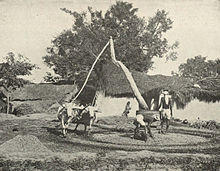 The earliest known production of crystalline sugar began in northern India. The exact date of the first cane sugar production is unclear. The earliest evidence of sugar production comes from ancient Sanskrit and Pali texts.[19][20][21][22] Around the 8th century, Muslim and Arab traders introduced sugar from medieval India to the other parts of the Abbasid Caliphate in the Mediterranean, Mesopotamia, Egypt, North Africa, and Andalusia. By the 10th century, sources state that every village in Mesopotamia grew sugarcane.[18] It was among the early crops brought to the Americas by the Spanish, mainly Andalusians, from their fields in the Canary Islands, and the Portuguese from their fields in the Madeira Islands. An article on Sugarcane cultivation in Spain is brought down in Ibn al-'Awwam's 12th-century agricultural work, Book on Agriculture.[23]