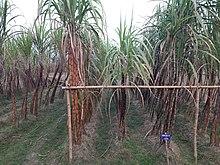 About 70% of the sugar produced globally comes from a species of sugarcane called Saccharum officinarum and hybrids of this species.[2] All sugarcane species can interbreed, and the major commercial cultivars are complex hybrids.[3]