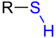 A thiol (/ˈθaɪɒl/)[1] or thiol derivative is any organosulfur compound of the form R−SH, where R represents an alkyl or other organic substituent. The –SH functional group itself is referred to as either a thiol group or a sulfhydryl group, or a sulfanyl group. Thiols are the sulfur analogue of alcohols (that is, sulfur takes the place of oxygen in the hydroxyl group of an alcohol), and the word is a blend of "thio-" with "alcohol", where the first word deriving from Greek θεῖον (theion) meaning "sulfur".[2]