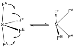The 19F NMR spectrum of SF4 reveals only one signal, which indicates that the axial and equatorial F atom positions rapidly interconvert via pseudorotation.[4]