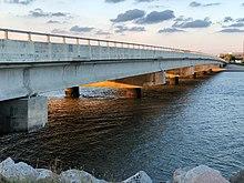 Sullivan's Island is located along the Atlantic Ocean near the center of Charleston County. The town is bordered to the west by the entrance to Charleston Harbor, to the north by Cove Inlet and the Intracoastal Waterway, and to the east by Breach Inlet and Swinton Creek. The Ben Sawyer Bridge connects Sullivan's Island to Mount Pleasant to the north. A bridge spanning Breach Inlet connects it to Isle of Palms to the east. By road it is 9 miles (14 km) north and then west into Charleston.