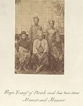 - Raja 'Usman, Raja Bendahara Wakil us-Sultan Wazir al-Kabir (s/o Raja Puteh Zalikha). Appointed as Heir Presumptive with the title of Raja Bendahara Wakil us-Sultan Wazir al-Kabir 3 July 1871, becoming the first to be so styled. Regent of Perak 1876. + 1876