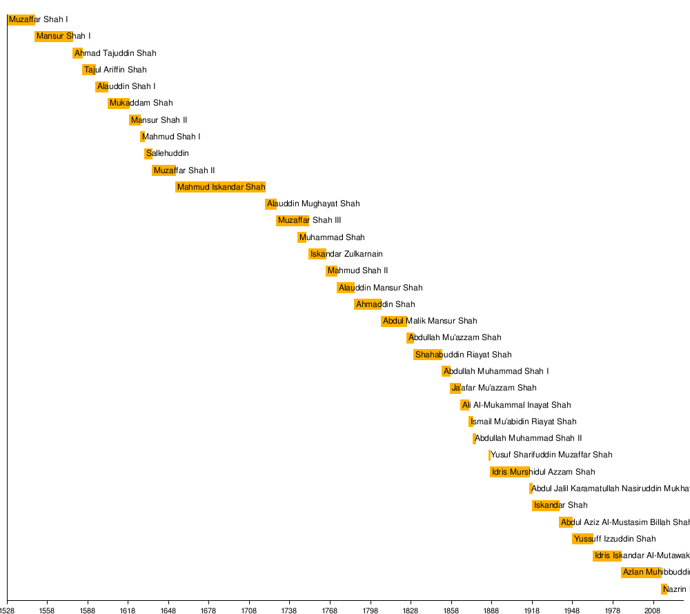 | 2 | Sultan Mansur Shah I Ibni Almarhum Sultan Muzaffar Shah I | 1549–1577 |