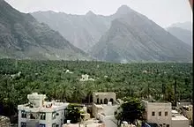 The Al Hajar Mountains, of which the Jebel Akhdar is a part, separate the country into two distinct regions: the interior, known as Oman, and the coastal area dominated by the capital, Muscat.[78] The British imperial development over Muscat and Oman during the 19th century led to the renewed revival of the Imamate cause in the interior of Oman, which has appeared in cycles for more than 1,200 years in Oman.[50] The British Political Agent, who resided in Muscat, owed the alienation of the interior of Oman to the vast influence of the British government over Muscat, which he described as being completely self-interested and without any regard to the social and political conditions of the locals.[79] In 1913, Imam Salim Alkharusi instigated an anti-Muscat rebellion that lasted until 1920 when the Imamate established peace with the Sultanate by signing the Treaty of Seeb.The treaty was brokered by Britain, which had no economic interest in the interior of Oman during that point of time. The treaty granted autonomous rule to the Imamate in the interior of Oman and recognized the sovereignty of the coast of Oman, the Sultanate of Muscat.[67][80][81][82] In 1920, Imam Salim Alkharusi died and Muhammad Alkhalili was elected.[43]