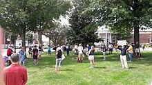 More than a dozen Summit residents died in the September 11 terrorist attacks.[46] Many worked in the World Trade Center, and commuted by rail to Hoboken.[46] A few days after the attacks, townspeople assembled on the town green while a minister "called out the names of a dozen residents still unaccounted for after Tuesday's attack on the World Trade Center. Others in the crowd of nearly 2,000 called out names he had left out."[46] A few World Trade Center firms moved to Summit.[47]