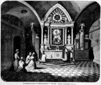 A main altar was usually preceded by three steps, below which were said the Prayers at the Foot of the Altar. Side altars usually had only one step.