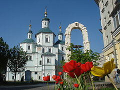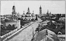 - The city centre is dominated by the large cathedral of the Saviour's Transfiguration. It is a neoclassical structure of the 18th century, extensively repaired and reconstructed in 1858 and in the 1880s, when the 56-metre-high bell tower (180 ft) was added. The interior features frescoes by Vladimir Makovsky and Klavdiy Lebedev.