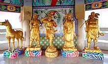 He may have also been influenced by local folk religion from Fuzhou province, where Monkey Gods were worshipped long before the novel. This included the three Monkey Saints of Lin Shui Palace, who were once Demons, who were subdued by the goddess Madam Chen Jing Gu, the Empress Lin Shui. The three were Dan Xia Da Sheng (丹霞大聖), the Red Face Monkey Sage, Tong Tian Da Sheng (通天大聖), the Black Face Monkey Sage, and Shuang Shuang San Lang (爽爽三聖), the White Face Monkey Sage. The two traditional mainstream religions practiced in Fuzhou are Mahayana Buddhism and Taoism. Traditionally, many people practice both religions simultaneously. However, the origins of local religion dated back centuries. These diverse religions incorporated elements such as gods and doctrines from different provincial folk-religions and cultures, such as totem worship and traditional legends. Since China is so large and though there are primarily two main religions, different folk stories will vary from towns, cities, and provinces with their own myths about different deities.[5] Sun Wukong's religious status in Buddhism is often denied by Buddhist monks both Chinese and non-Chinese alike, but is very welcomed by the general public, spreading its name across the globe and establishing itself as a cultural icon.[5]