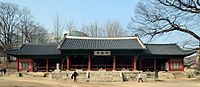 Sungkyunkwan University (SKKU or simply Seongdae, Hangeul: 성균관대학교; Hanja: 成均館大學校) is a private comprehensive research university in South Korea. The institution traces its origins to the historic Sungkyunkwan, founded in 1398 and located in central Seoul.[4] As the foremost educational institution of the Joseon dynasty, it was governed by the great code of the state administration[5] with royal assent.[6] It was restructured as a comprehensive university in the late 19th century, and has since greatly expanded its course offerings. It is widely regarded as one of the most prestigious private universities in South Korea, notable for its numerous influential alumni, strong research output, and close partnership with Samsung.
