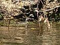 Sungrebes prefer quiet forest streams and rivers, freshwater ponds, and lakes with thick, overhanging vegetation.[23] Here, they hunt snails and a variety of terrestrial and aquatic arthropods, as well as small fish, frogs and lizards. They will also eat some plant matter, including seeds and fruit.[3] Most hunting and foraging takes place on or just above the surface of the water, although they may make short dives after fish and frogs, or hunt from low perches over the water.[4]