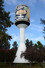 Sunnyvale continued to grow and in 1904, dried fruit production began. Two years later, Libby, McNeill & Libby, a Chicago meat-packing company, decided to open its first fruit-packing factory in Sunnyvale. Today, a water tower painted to resemble the first Libby's fruit cocktail can label identifies the former site of the factory.