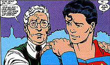 In writing about the version of Superman in his series, writer Grant Morrison said, "Ma & Pa Kent—one dead. We're going with the version where Pa Kent has died. That's the day Superboy becomes a man."[57] Dialogue between several characters implies that young Clark is a costumed adventurer, but he is never referred to as "Superboy".[56]