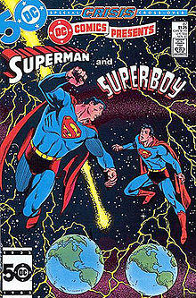 In 1985, during the Crisis on Infinite Earths crossover event, another Superboy was created. This Superboy hails from the parallel Earth known as Earth-Prime, where Superman and the other DC superheroes only exist as fictional comic book characters.[31] Brought over from his dimension by Superman to aid in the universe-spanning battle at the heart of the Crisis, Superboy helps the Earth-Two Superman (Kal-L) defeat the Anti-Monitor, the villain who spawned the Crisis. With their home dimensions destroyed, Superboy, Superman of Earth-Two, his wife Lois Lane, and Alexander Luthor, Jr. of Earth-Three journey to a "paradise dimension".[32]