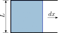 Surface tension γ of a liquid is the force per unit length. In the illustration on the right, the rectangular frame, composed of three unmovable sides (black) that form a "U" shape, and a fourth movable side (blue) that can slide to the right. Surface tension will pull the blue bar to the left; the force F required to hold the movable side is proportional to the length L of the immobile side. Thus the ratio F/L depends only on the intrinsic properties of the liquid (composition, temperature, etc.), not on its geometry. For example, if the frame had a more complicated shape, the ratio F/L, with L the length of the movable side and F the force required to stop it from sliding, is found to be the same for all shapes. We therefore define the surface tension as