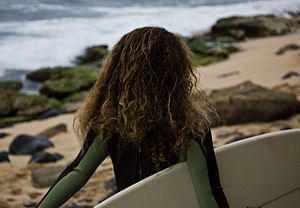 As early as 1950, Life magazine referred to the "beach bum" surfers of southern California.[1] In 1963, Billboard described the emerging cultural "uniform" of the surfer with bleached blond hair and white Levi jeans, cut off at the knee.[2] In 1965, Life magazine noted that the long surfer hair style and clothing (Levis) of surfers also transcended into skiing fashion.[3] From the late 1960s to the 1980s in particular, especially at the time of the hippy, the surfer style was characterized by thick, long, bleached, often curly blond hair, bleached intensively by the sun and the saltwater.[4] The hair of surfers is often damaged and bleached, brought about by frequent exposure to sunlight, humidity and salty water.[5] Blonder or red headed individuals tend to be more affected, given that their pheomelanin is more sensitive.[5]