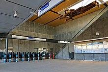Surrey Central station was opened in 1994 along with two other stations when the Expo Line was extended from Scott Road station farther into Whalley, to the "Surrey City Centre" district.[2] Prior to the opening of the station, there was a bus loop on the site known as "Whalley Exchange", which opened in 1975.[3] The station was briefly known as "Whalley Central" during planning;[4] however, the name "Surrey Central" was chosen after an ad was placed in the local paper calling on residents to propose an appropriate name.