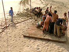- A food eating challenge, involving food items that may be local delicacies but are considered gross or revolting by the castaways. These were more often seen in earlier seasons but in recent years have become much less frequent.
