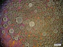 Suspension polymerization is divided into two main types, depending on the morphology of the particles that result. In bead polymerization, the polymer is soluble in its monomer and the result is a smooth, translucent bead. In powder polymerization, the polymer is not soluble in its monomer and the resultant bead will be porous and irregular.[4] The morphology of the polymer can be changed by adding a monomer diluent, an inert liquid that is insoluble with the liquid matrix. The diluent changes the solubility of the polymer in the monomer and gives a measure of control over the porosity of the resulting polymer.[5]