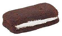 Suzy Q's are an American brand of snack cake produced and distributed by Hostess Brands. The oblong sandwich, of devil's food cake with white crème filling or banana-flavored, was invented in 1961 and named after the daughter of Continental Baking Company Vice President Cliff Isaacson.[1] The cake was initially discontinued in 2012, but was reintroduced in 2015, although with a different look.[2] However, after backlash from fans, the original cake was reintroduced in 2018.[3]