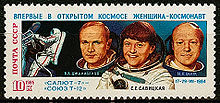 Svetlana Yevgenyevna Savitskaya (Russian: Светла́на Евге́ньевна Сави́цкая; born August 8, 1948) is a former Soviet aviator and cosmonaut who flew aboard Soyuz T-7 in 1982, becoming the second woman in space some 19 years after Valentina Tereshkova.