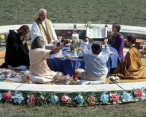 Swami Satchidananda was considered one of the main early advocates of the interfaith movement in America.[22] His interest in interfaith understanding dates back to the early 1950s, when Divine Life Society members were preparing for Guru Poornima Day, an annual celebration honoring the divine qualities in one's spiritual teacher. Usually each lineage has a celebration, honoring only its Guru. Satchidananda suggested that the focus be on Swami Sivananda and other spiritual masters too, including those of other faiths. That tradition continues today in all Integral Yoga centers.[23]