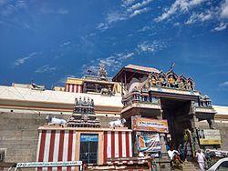 The temple priests perform the puja (rituals) during festivals and on a daily basis. Like other Shiva temples of Tamil Nadu, the priests belong to the Shaiva community, a Brahmin sub-caste. The temple rituals are performed six times a day; Ushathkalam at 5:30 a.m., Kalasanthi at 8:00 a.m., Uchikalam at 10:00 a.m., Sayarakshai at 5:00 p.m., Irandamkalam at 7:00 p.m. and Ardha Jamam at 8:00 p.m. Each ritual comprises four steps: abhisheka (sacred bath), alangaram (decoration), naivethanam (food offering) and deepa aradanai (waving of lamps) for Swaminathaswamy. The worship is held amidst music with nagaswaram (pipe instrument) and tavil (percussion instrument), religious instructions in the Vedas (sacred texts) read by priests and prostration by worshippers in front of the temple mast. There are monthly rituals like amavasai (new moon day), kiruthigai, pournami (full moon day) and sathurthi. The major festival of the temple, Vaikasi Visagam, is celebrated during the Tamil month of Vaikasi (May -June). As per Hindu legend, the celestial deity Indra worshipped Subramanyaswamy on the day of visagam star and gained strength to defeat the demon Arikesa.[3] Like other Murugan temples, the worship practises include tonsuring in the temple, ablution of the deity with sandal, panchamirtham (a mixture of five ingredients) and milk are performed by devotees. Carrying milk pots (called palkudam) and Kavadi are other common forms of worship.[8][22] A few years ago, a popular event called Subramanya Sahasranama, meaning doing archana with 1008 forms of Muruga was celebrated every month. Like in Palani Murugan temple, Vibhuti Abhishekam, the ablution of the central deity with ash is performed. The central deity with adorned with diamond Vel every Thursday.[22] The kumbabhisekam of the temple was performed on 9 September 2015.[23]