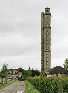 Built by Andrew Thomas Turton Peterson on his private estate from 1879–1885, both its design and the use of concrete as a building material were influenced by the follies Peterson had seen during his time in India.[23] Peterson—a proponent of spiritualism in his later life—also claimed to be guided by the spirit of Sir Christopher Wren in the building of the tower. It is constructed entirely out of concrete made with Portland cement, with only the windows having iron supports. At the time, it was the first major building in Britain to be built entirely from concrete,[24] and it remains the tallest non-reinforced concrete structure in the world.