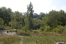 Soon after the destruction, the area became a dumping ground and gathering place for the homeless. In the 1970s the valley was cleaned up, and it was designated a nature center in 1976. A 1917 report remarked, "Phalen Creek and the banks of this stream are ideal for park purposes, while in their present state they constitute a menace to the health of the residents and to the community at large."[6] The area remains uninhabited to this day. The original woodland state has returned (although some of the building foundations still remain), the creek has been partially restored, and the entire valley has been made part of Swede Hollow Park, a city park. The trail running along the west edge of Swede Hollow is the Bruce Vento Regional Trail, paved on the former right-of-way of the Northern Pacific Railway's Skally Line that ran from St. Paul to Duluth.[2]