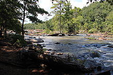 Sweetwater Creek State Park is a 2,549 acre (10.32 km2) Georgia state park in east Douglas County, 15 miles (24 km) from downtown Atlanta. The park is named after Sweetwater Creek which runs through it. Cherokee people were forcibly removed from the area and it eventually became home to the New Manchester Manufacturing Company and mill town of New Manchester. During the American Civil War the textile mill and general store were burned down by the Union Army and the women and children taken away and eventually sent to Louisville, Kentucky and Indiana as refugees.[1][2]