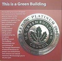 Due to conservation efforts, the Visitor Center was built in a sustainable design in 2006.[8] It is 9,000 square feet (840 m2) building which construction cost $1.5 or $173/SF.[8] The Visitor Center has received the Leadership in Energy and Environmental Design (LEED) Platinum Certification from the U.S. Green Building Council, which is the highest level attainable.[8] In 2007, the Visitor Center was one of only twenty platinum-rated buildings in the world and it was the first in the Southeast.[8] The building’s reduced impact: 77% reduction in water use, 51% reduction in electricity use, 80% of construction waste diverted from landfill, no increase in stormwater runoff after construction, and daylighting in 83% of interior spaces.[8] The building is built into a hillside to minimize the physical and visual disturbance to the land.[8] To reduce the urban heat island effect and water runoff, two 2,800-square-foot (260 m2) building’s roofs are planted with native plants, green roofs.[8] The green roofs are 12-inch (300 mm) deep.[8]