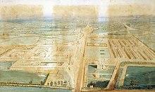 There are several stories relating to how the railway came to pass through Swindon. A well-circulated myth that Brunel and Gooch were surveying a vale north of Swindon Hill and Brunel either threw a stone or dropped a sandwich and declared that spot to be the centre of the works.[2][3] However Swindon's midway point between GWR terminals and the topography of land near the town were more likely factors.[4][5]
