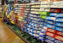 There are many regional dishes in Switzerland. One example is Zürcher Geschnetzeltes, thin strips of veal with mushrooms in a cream sauce served with Rösti. Italian cuisine is popular in contemporary Switzerland, particularly pasta and pizza. Foods often associated with Switzerland include particular types of cheese and milk chocolate. Swiss cheeses, in particular Emmental cheese, Gruyère, Vacherin, and Appenzeller, are famous Swiss products. The most popular cheese dishes are fondue and raclette. Both these dishes were originally regional dishes, but were popularized by the Swiss Cheese Union to boost sales of cheese.