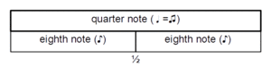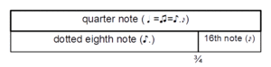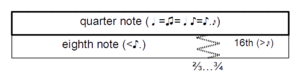 - ≈3:1 = dotted eighth note + sixteenth note.