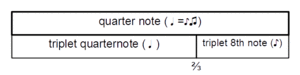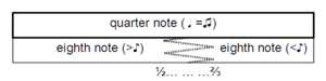 - ≈2:1 = triplet quarter note + triplet eighth, triple meter;