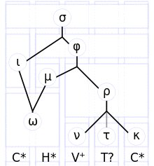 - ^ More generally, the letter φ indicates a prosodic foot of two syllables
