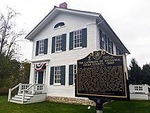 General David White is considered the founder of Sylvania as the first pioneer settler and town supervisor, originally from Palmyra, New York. In 1832, White was given the title of General (possibly after services rendered during the War of 1812), which allowed him to explore the western Lake Erie region. In realizing the potential of some available land to the north of Maumee, Ohio, a notable port city at the time, he acquired a title to the land and built a log cabin at what would eventually be the corner of Summit and Monroe streets near downtown Sylvania.[10][11][12][13]