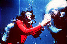 After receiving her Ph.D. in 1966, Earle spent a year as a research fellow at Harvard, then returned to Florida as the resident director of the Cape Haze Marine Laboratory.[6] In 1969, she applied to join the Tektite Project, an installation fifty feet below the surface of the sea off the coast of the Virgin Islands which allowed scientists to live submersed in their area of study for up to several weeks. Although she had logged more than 1,000 research hours underwater, Earle was rejected from the program. The next year, she was selected to lead the first all-female team of aquanauts in Tektite II.[7]