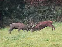 Competition can be defined as an interaction between organisms or species, in which the fitness of one is lowered by the presence of another. Limited supply of at least one resource (such as food, water, and territory) used by both usually facilitates this type of interaction, although the competition may also exist over other 'amenities', such as females for reproduction (in the case of male organisms of the same species).[24]