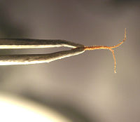 Unlike most animals, plants grow new organs after embryogenesis, including new roots, leaves, and flowers.[3] In the flowering plants, the gynoecium develops in the central region of the flower as a carpel or in groups of fused carpels.[4] After fertilization, the gynoecium develops into a fruit that provides protection and nutrition for the developing seeds, and often aids in their dispersal.[5] The gynoecium has several specialized tissues.[6] The tissues of the gynoecium develop from genetic and hormonal interactions along three-major axes.[7][8] Theses tissue arise from meristems that produce cells that differentiation into the different tissues that produce the parts of the gynoecium including the pistil, carpels, ovary, and ovals; the Carpel Margin Meristem (arising from the carpel primordia) produce the ovals, ovary septum, the transmitting track, and plays a role in fusing the apical margins of carpels.[9]