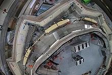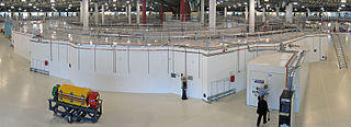 A synchrotron is a particular type of cyclic particle accelerator, descended from the cyclotron, in which the accelerating particle beam travels around a fixed closed-loop path. The magnetic field which bends the particle beam into its closed path increases with time during the accelerating process, being synchronized to the increasing kinetic energy of the particles (see image[1]). The synchrotron is one of the first accelerator concepts to enable the construction of large-scale facilities, since bending, beam focusing and acceleration can be separated into different components. The most powerful modern particle accelerators use versions of the synchrotron design. The largest synchrotron-type accelerator, also the largest particle accelerator in the world, is the 27-kilometre-circumference (17 mi) Large Hadron Collider (LHC) near Geneva, Switzerland, built in 2008 by the European Organization for Nuclear Research (CERN). It can accelerate beams of protons to an energy of 6.5 teraelectronvolts (TeV).