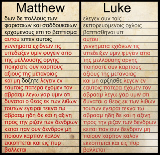 Farrer (Mark-Matthew) | ![]() | Double tradition explained entirely by Luke's use of Matthew. | |