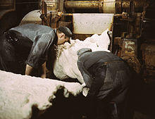 Operation Pointblank bombing targets of Nazi Germany included the Schkopau (50,000 tons/yr) plant and the Hüls synthetic rubber plant near Recklinghausen (30,000, 17%),[8] and the Kölnische Gummifäden Fabrik tire and tube plant at Deutz on the east bank of the Rhine.[9] The Ferrara, Italy, synthetic rubber factory (near a river bridge) was bombed August 23, 1944.[1] Three other synthetic rubber facilities were at Ludwigshafen/Oppau (15,000), Hanover/Limmer (reclamation, 20,000), and Leverkusen (5,000). A synthetic rubber plant at Oświęcim, in Nazi-occupied Poland, was under construction on March 5, 1944[10] operated by IG Farben and supplied with slave labor, by the SS, from the associated camp Auschwitz III (Monowitz).[11][12]