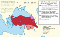 In September 1936 France announced that it would grant full independence to Syria, which would also include Alexandretta. The President of the Republic of Turkey, Mustafa Kemal Atatürk, responded with a demand that Alexandretta be given its own independence.[26] The issue was brought before the League of Nations, which sent a mission to the district in January 1937. The mission concluded that the Turks constituted a majority and by July 1938 elections were held in the province; the Turks formed a majority of 22 seats in a 40-seat parliament of the newly established Hatay State, which remained a joint Franco-Turkish protectorate.[27] The Hatay State began using Turkish flags, and petitioned Ankara to unify Hatay to the Republic of Turkey. France finally agreed to the Turkish annexation on 23 July 1939.[26] Today, the Bayırbucak region, the coastal and rural section covering the northern Latakia area, has a considerable Turkmen presence and is considered by some Turks as a "stretch of the modern Turkish Hatay Province".[28]