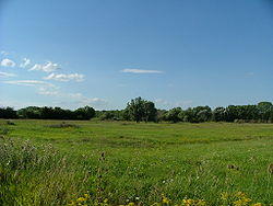 The Szigetköz (German: Kleine Schüttinsel or Little Schütt Island, Slovak: Malý Žitný ostrov or Little Rye Island) is an island plain in Western Hungary, part of the Little Hungarian Plain. The name literally means island alley, because the territory is located on an island. Its borders are the Danube and its branches; with a length of 52.5 kilometres (32.6 miles), with an average width of 6 to 8 kilometres (4–5 miles), and with a territory of 375 square kilometres (145 square miles), the island is Hungary's largest one. The territory's elevation varies between 110 and 125 metres (361 and 410 feet) above sea level.