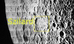 Szilard lies on the far side of the Moon and cannot be seen directly from the Earth.