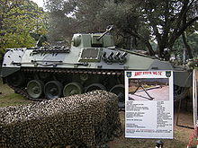 Variants also include the Vehículo de Combate de Artillería de 155 mm (155 mm Artillery Combat Vehicle), or VCA 155, and the Vehículo de Combate Transporte de Mortero (Mortar Transport Combat Vehicle), or VCTM. The VCA-155 is an elongated TAM chassis fitted with Oto Melara's Palmaria 155 mm (6.1-inch) self-propelled howitzer turret.[22] It carries 28 projectiles, 23 of which are stored in the turret bustle.[23] The VCTM carries an AM-50 120 mm (4.7-inch) internal mortar, which has a range of 9,500 meters (31,167.98 ft) and a rate of fire of 8 to 12 shots per minute. Based on the TAM chassis, the Vehículo de Combate Puesto de Mando (command combat vehicle), or VCPC, is another variant designed in 1982.[24] The Vehículo de Combate Lanzacohetes (Rocket launcher combat vehicle), or VCLC, designed in 1986, is also based on the TAM chassis and can be fitted with both 160 mm (6.3-inch) and 350 mm (13.8-inch) rockets. [22] A combat ambulance, Vehículo de Combate Ambulancia (VCA), and an armored recovery vehicle, Vehículo de Combate de Recuperación (VCRT) are other combat variants of the tank.