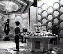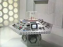 The original console room was designed by Peter Brachacki. It was built on a shoestring budget and a tight schedule, which led to Brachacki leaving the show, owing to disagreements with the production team and possibly a feeling that he had been given an impossible task.[51] Despite his leaving the show and mixed reactions as to how the set looked (producer Verity Lambert liked it but director Waris Hussein did not), the basic design of the hexagonal console and wall roundels has persisted to the present day.[52]